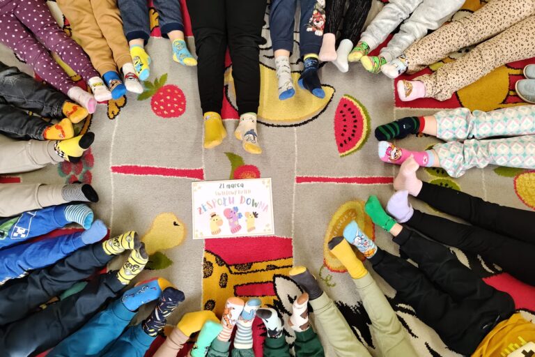 Również 20.03.2026r obchodzony był w przedszkolu w Łazach Dzień Kolorowej Skarpetki.To była radosna akcja edukacyjna, promująca tolerancję i solidarność z osobami z ZespołemDowna