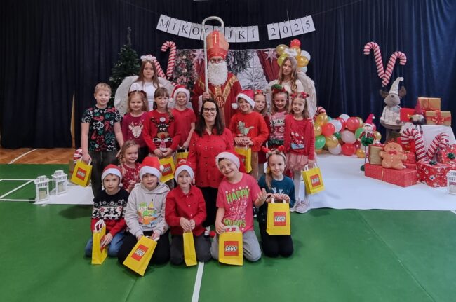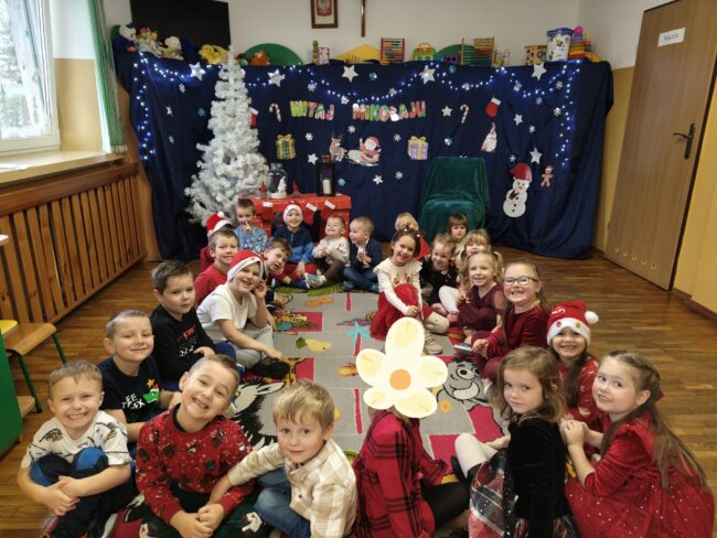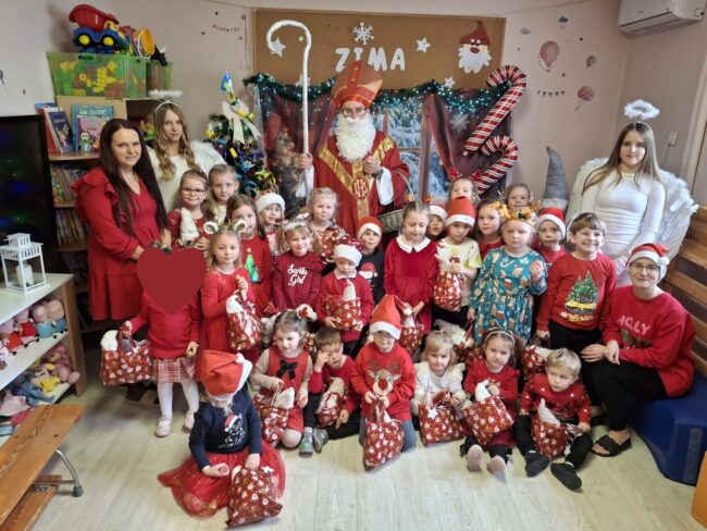 Święty Mikołaj odwiedził przedszkolaki w Łazach. Dzieci przygotowały dla Niego piękny występ.Recytowały wiersze, śpiewały oraz tańczyły piosenki. Na koniec wręczyły Mikołajowi książeczkę,którą zrobiły dla Niego w podziękowaniu za odwiedziny. Spotkanie było pełne uśmiechu i radości