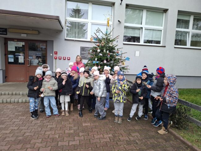 Z radością informujemy, że Rada Rodziców ufundowała piękną choinkę, która stanęła przed wejściem do szkoły i wprowadziła wszystkich w magiczny, świąteczny nastrój.