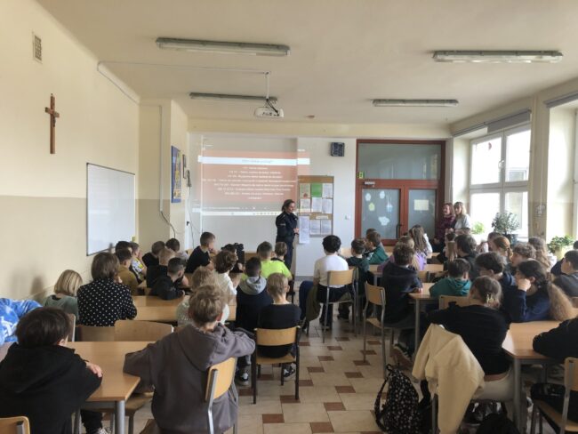 12.03.2026r. w naszej szkole odbyły się warsztaty profilaktyczne dla uczniów klas 5–7 dotyczące bezpieczeństwa w Internecie. Zajęcia poprowadziła policjantka – asp. Anna Trzcionka-Domagała – specjalista Zespołu do Spraw Prewencji Kryminalnej.