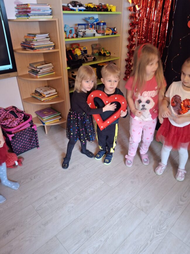 W poniedziałek 16 lutego 2026r. obchodziliśmy w naszym przedszkolu „WALENTYNKI”. Dzieci zapoznały się z tradycją Walentynek, rozmawiały o tym jak można okazywać miłość bliskim osobom.
