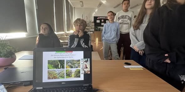 Uczniowie kl. 7 i 6, uczący się języka niemieckiego, wzięli udział w spotkaniu online z aktywistką z Niemiec – Friedą Schwab, studentką z Augsburga, która opowiedala o swoim życiu i zainteresowaniach🙂My również mogliśmy pokazać uroki naszej okolicy oraz zadać prowadzącej pytania. Była to żywa lekcja języka niemieckiego z elementami kultury, geografii i ekologii🌎Spotkanie było możliwe dzięki współpracy z Goethe-Institut w Warszawie w ramach projektu Deutsch Plus. 🇩🇪