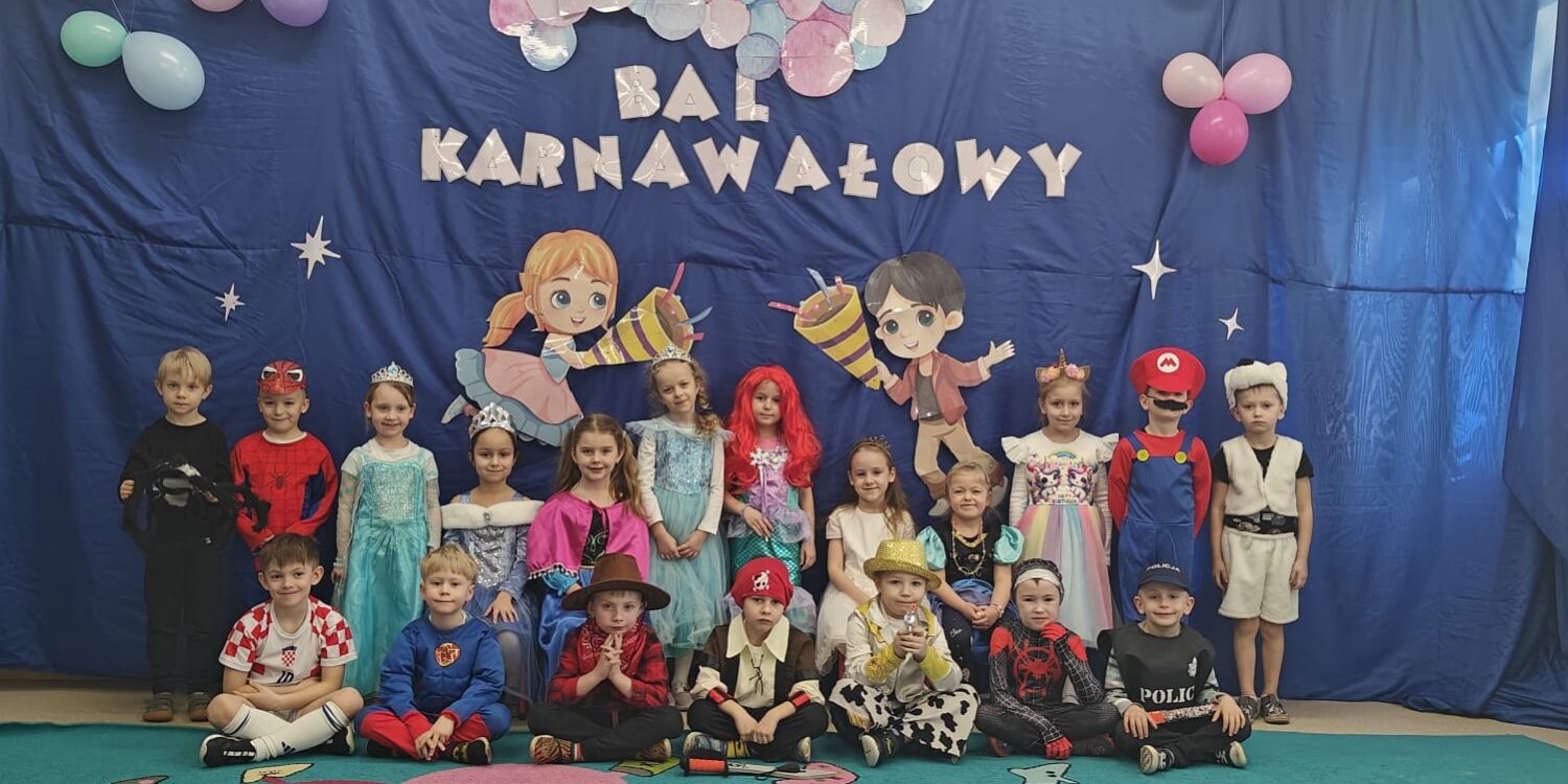 21 lutego 2025 r. w naszym przedszkolu odbył się bal karnawałowy. Dzieci przebrane były za bohaterów znanych i lubianych bajek. Można było spotkać wróżki, królewny, rycerzy, królów, , piratów, żołnierzy, policjantów, strażaków, spaider – mena, Batmana. Muzyka zachęcała dzieci do tańca. Wszyscy świetnie się bawili uczestnicząc w zabawach w kółeczku, w parach, pojedynczo, w pociąg. Wspólna zabawa przyniosła wiele radości naszym wychowankom.