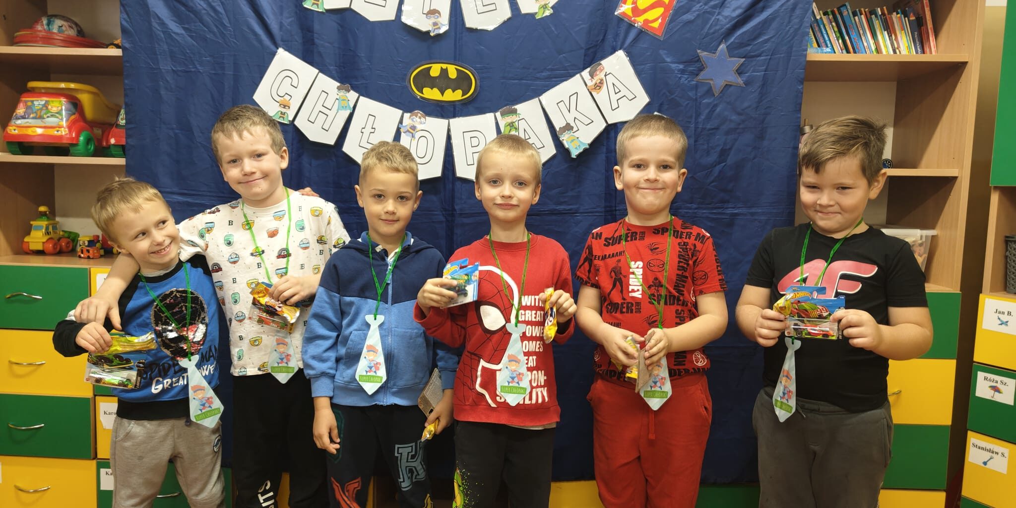 Nasi mali gentlemani świętowali swój dzień w wyjątkowy sposób. Czekał na nich prawdziwy tor przeszkód Super Chłopaka – pełen wyzwań i dobrej zabawy. Dziewczynki mocno kibicowały każdemu z nich, a potem z radością dołączyły do zabawy. Nie zabrakło pysznego poczęstunku, a potem każdy z chłopców otrzymał prezent oraz krawat Super Chłopaka- prawdziwego bohatera, bo przecież każdy z Nich jest wyjątkowy.