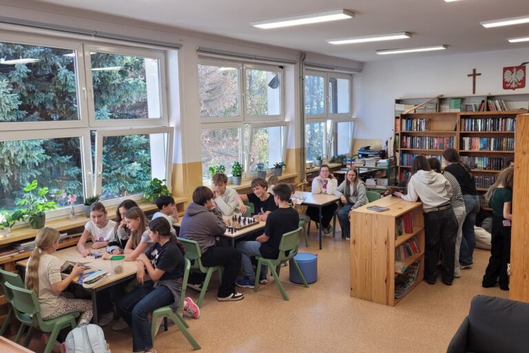 W dniu 28 października 2025 r. bawiliśmy po raz kolejny w pobijanie rekordu wypożyczeń. W tym roku nasza szkolna biblioteka została dosłownie oblężona przez uczniów, którzy chcieli wypożyczyć książki.