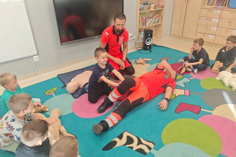W październiku w naszym przedszkolu odbyły się wyjątkowe warsztaty z udzielania pierwszej pomocy, które poprowadzili strażacy z lokalnej jednostki Ochotniczej Straży Pożarnej.