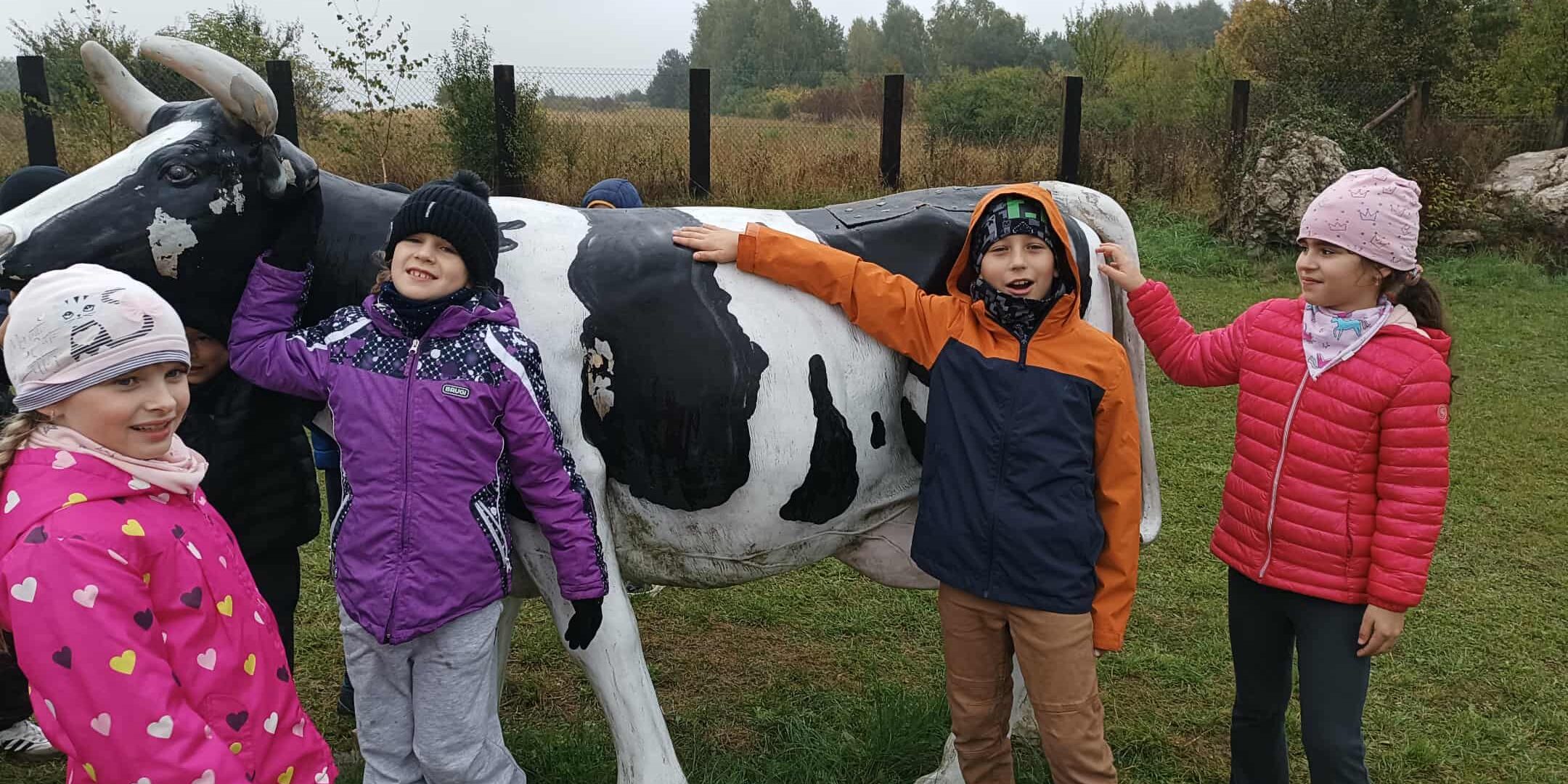 W dniu 06 października pomimo pochmurnej pogody, uczniowie klasy drugich z ogromnym entuzjazmem wyruszyli na wycieczkę do gospodarstwa agroturystycznego „Pod Skałką” w Przybynowie. Aura nie przeszkodziła nam w świetnej zabawie i odkrywaniu nowych rzeczy! Zwiedziliśmy skansen, gdzie poznaliśmy życie dawnych mieszkańców wsi – stare chaty, narzędzia i przedmioty codziennego użytku przeniosły nas w przeszłość. W mini zoo czekały na nas niezwykłe zwierzęta. Największą atrakcją był kangur, który skakał tuż obok nas! Spotkaliśmy też świnie wietnamskie, kozy i wiele innych ciekawych stworzeń. Przejażdżka kolorową ciuchcią po okolicy pozwoliła nam podziwiać piękne krajobrazy i jesienne barwy, które nawet przy pochmurnym niebie wyglądały magicznie. Na zakończenie wycieczki wzięliśmy udział w warsztatach plastycznych, podczas których wykonaliśmy własne jesienne stroiki. Każdy z nas mógł zabrać swoją pracę do domu – to była wyjątkowa pamiątka z tego dnia!