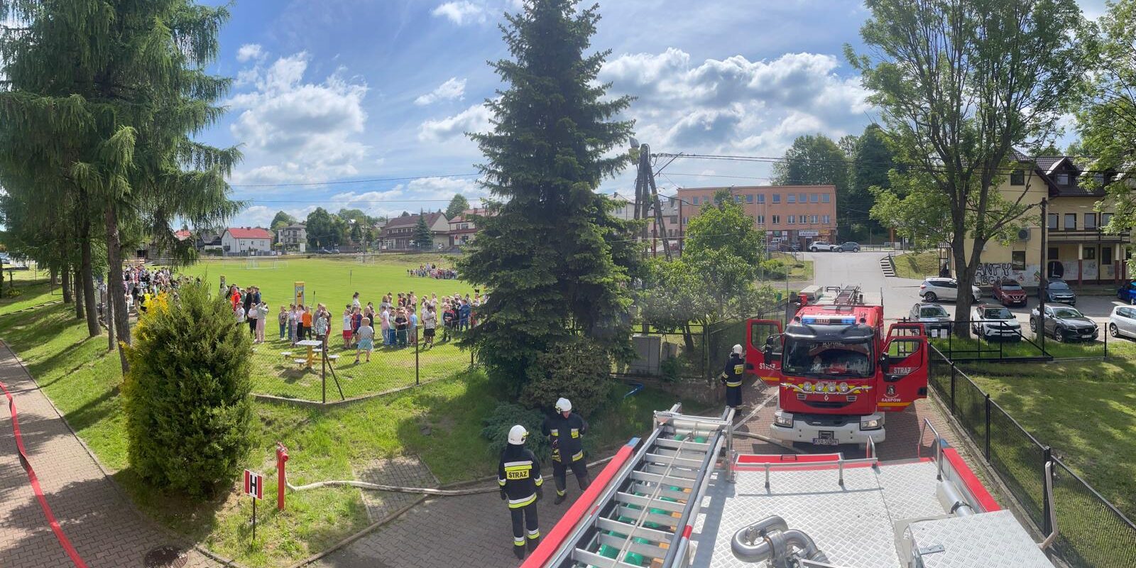 Udział przedszkolaków w próbnej ewakuacji szkoły podstawowej i przedszkola