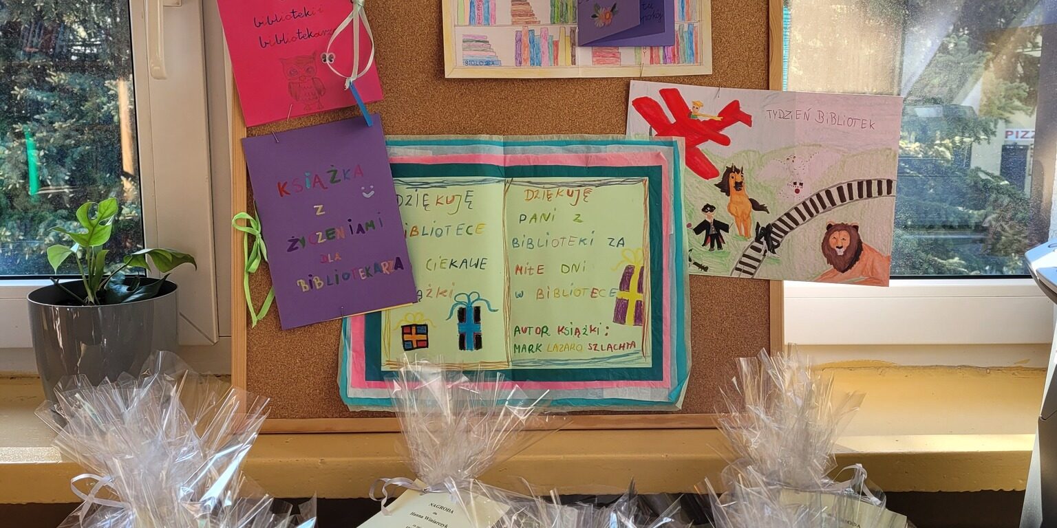 Pani z Biblioteki dziękuje za piękne kartki i życzenia z okazji Dnia Bibliotek! Każda z prac jest wyjątkowa, od cudownych kartek w formie pop-up po przepiękne prace literackie w formie wiersza. Zapraszamy do biblioteki gdzie można oglądać prace konkursowe.